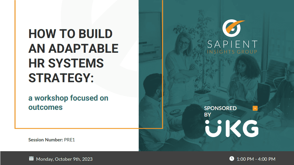 This is a summary of the HR Systems Strategy Workshop presented at HR Tech on October 9, 2023. The workshop focused on developing your HR Systems Strategy, making it adaptable, and using it to drive and support business outcomes.