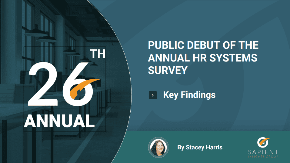 Data presented is from the 26th Annual 2023-2024 HR Systems Survey, which collected data from May 2023-July 2023.